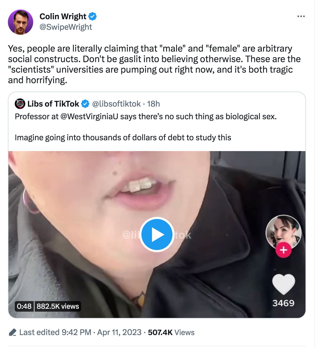 Via Libs of TikTok and Colin Wright, the continuing decline at our institutions of higher learning:
