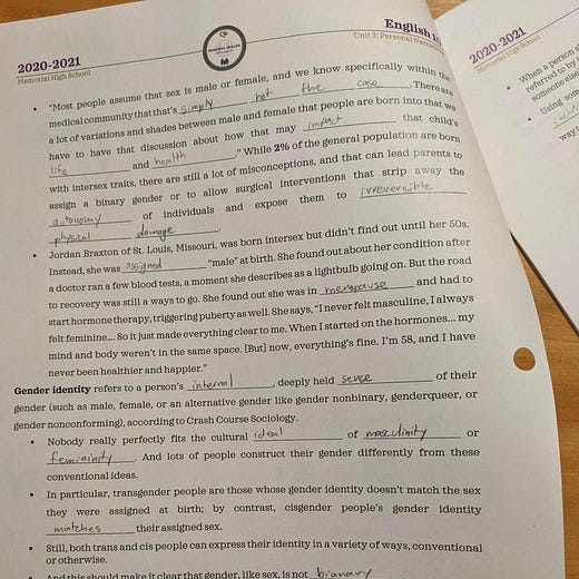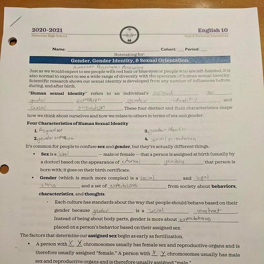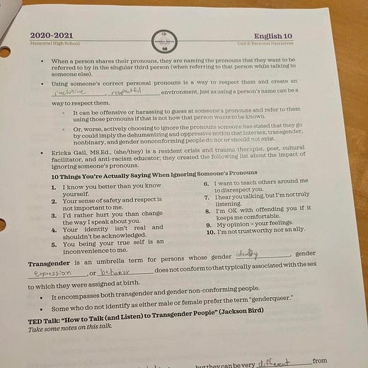 Via Andrew Sullivan: how to teach gender theory to 10th graders without (directly) teaching gender theory to 10th graders: