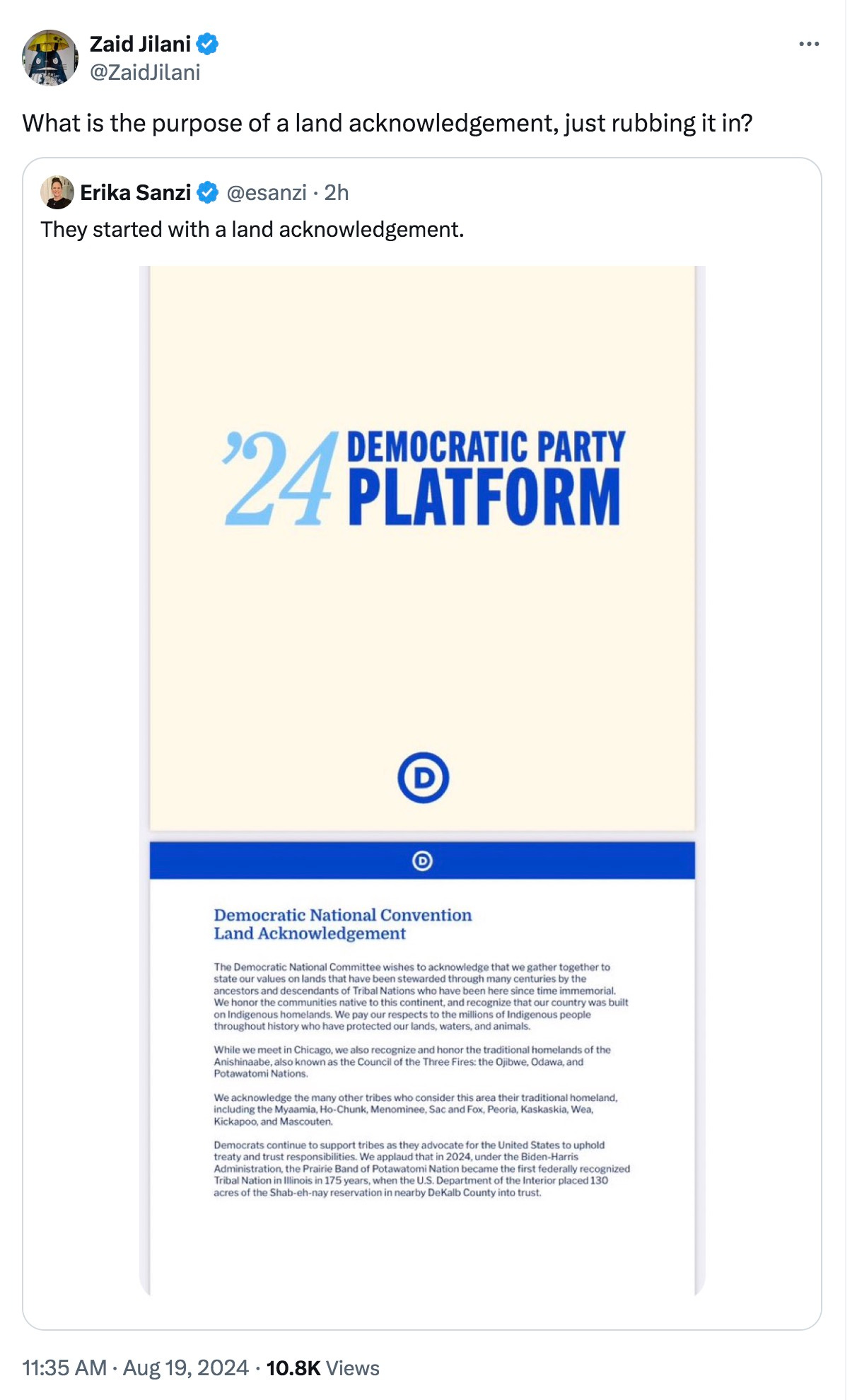 And finally, Zaid Jilani asks what the Democrats are trying to say to Native Americans with the “land acknowledgement” in their party platform: