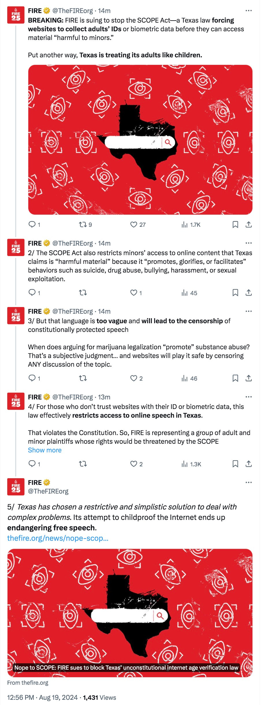 The Foundation for Individual Rights and Expression makes the case that a proposed Texas law requiring IDs or other personal information to access certain websites violates the First Amendment: