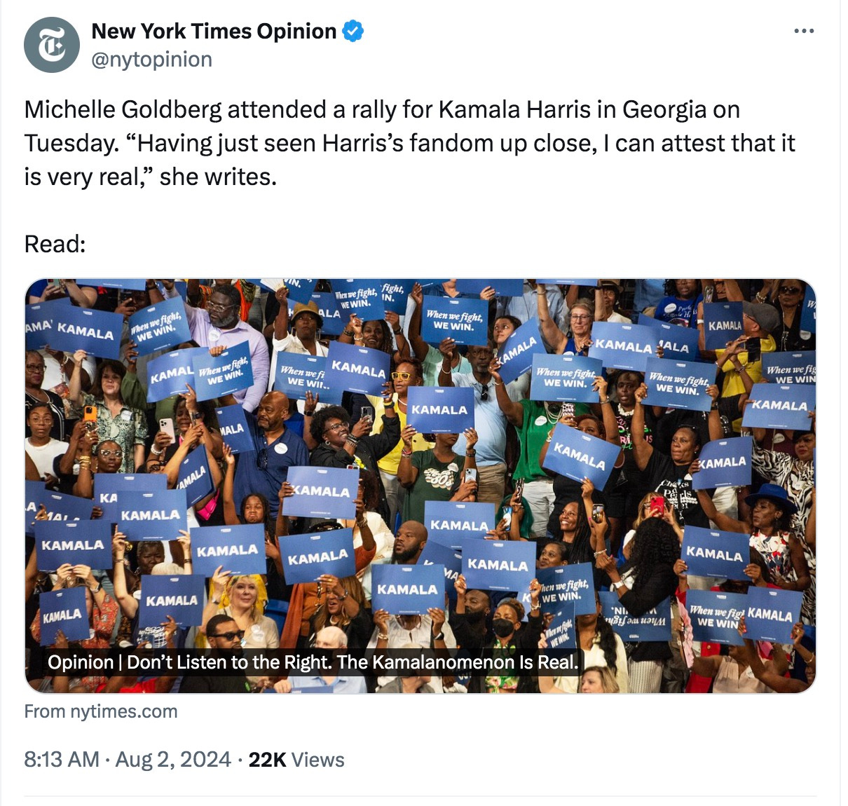 And finally, “The Kamalanomenon Is Real,” says Michelle Goldberg of the New York Times. One can only assume Kamalamonium and Kamalamentum just didn’t poll as well.