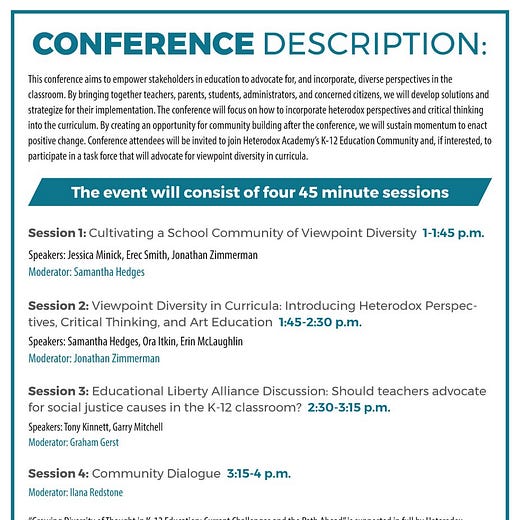 John McWhorter calls attention to an upcoming conference on Growing Diversity of Thought in K-12 Education sponsored in part by Heterodox Academy: