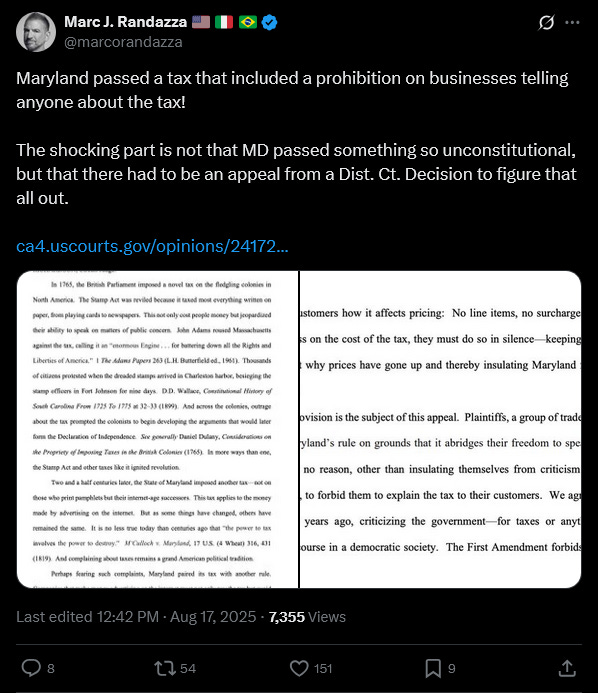 Maryland. Where the government forces you to tax your customers—and prohibits you from telling them: