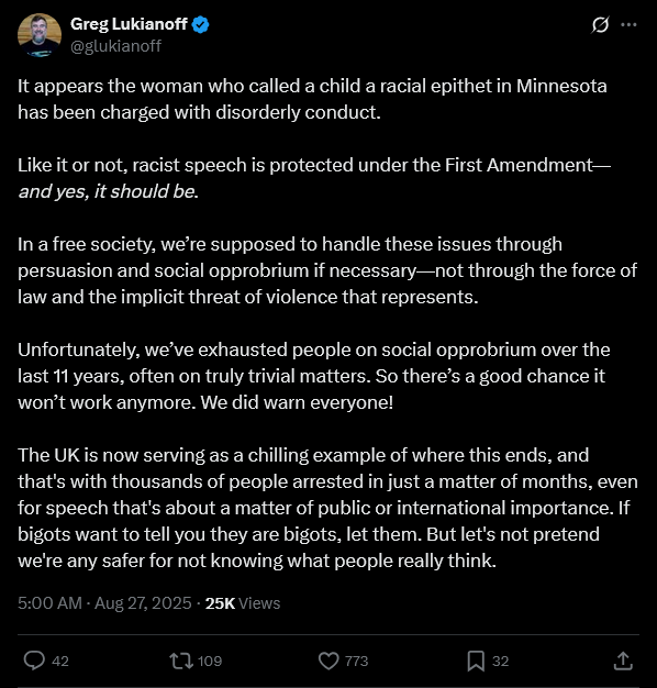 Ugly speech is still free speech, says Greg Lukianoff. We roll back the First Amendment at our own peril.