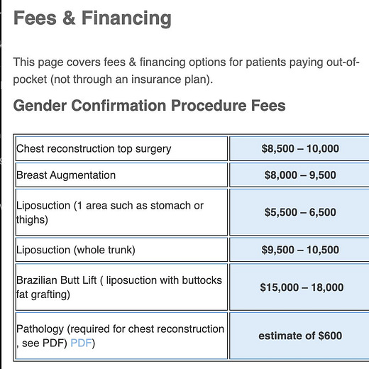 Via Christopher Rufo and Matt Walsh - the lucrative business of “gender confirmation surgery”: