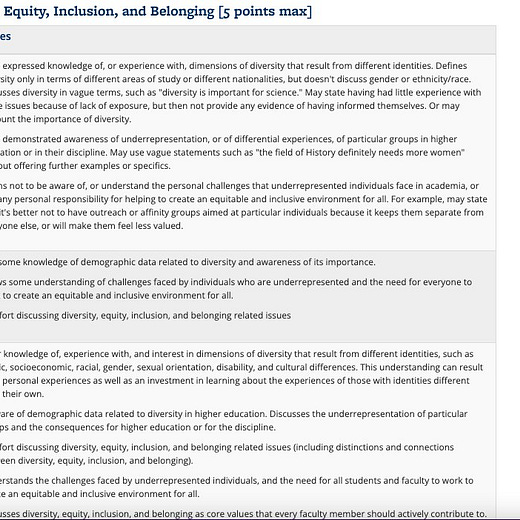 Excerpts from a John Sailer thread on universities and DEI (diversity, equity, inclusion) statements: