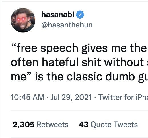 Glenn Greenwald (click through for more) on the left’s selective outrage over free speech: