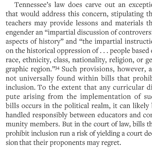 It’s true that a public K-12 school is not a public university. Public universities stock their libraries with books representing multiple points of view. They also grant professors freedom to conduct classes in their areas of expertise as they see fit. All this is on the theory that college students are old enough to choose their schools, their courses, and then decide for themselves the truth or falsity of the various perspectives they encounter. Public K-12 is different. Students are essentially a captive audience, and are young enough to be swayed by teachers who indoctrinate. That is why state laws barring certain content from K-12 teaching are permissible to begin with.