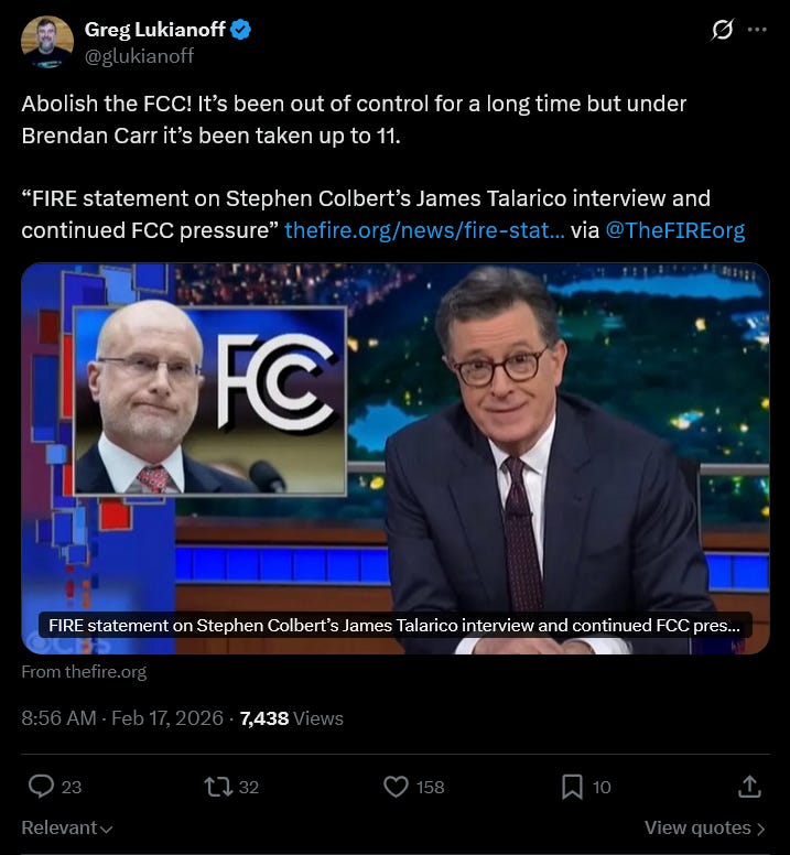 Greg Lukianoff ups the ante, arguing we should just abolish the FCC. If there’s no agency, there’s no squabbling over this or that specific regulation.