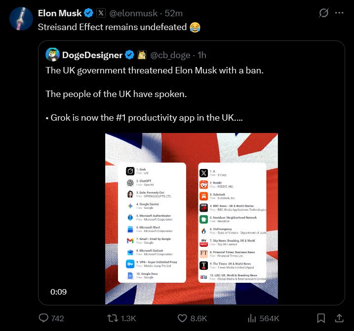 The UK threatened to ban X. The British public was less than thrilled by their government’s proposal, as Elon Musk was happy to point out.