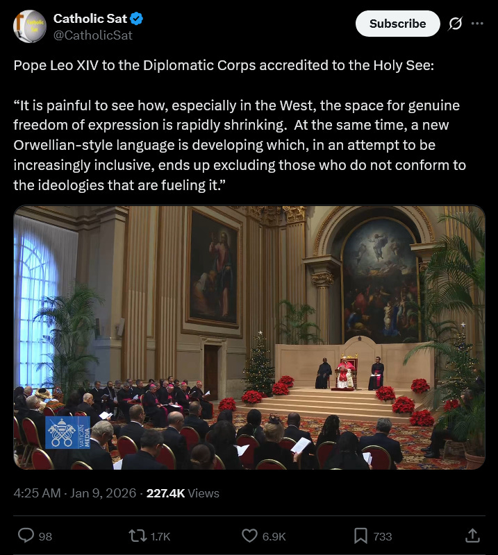 Doing the Lord’s work, Pope Leo XIV slams the West for replacing free speech with an ideological substitute that punishes heterodox perspectives.