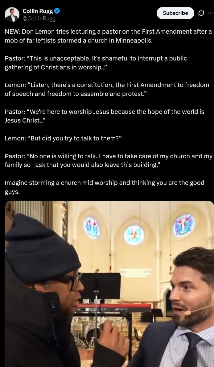 Colin Rugg has no patience for Don Lemon’s antics: interrupting a worship service and then complaining that nobody will talk to him—as he interviews the pastor.