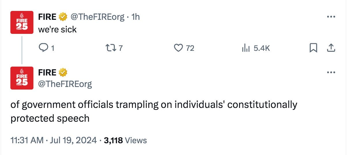 When Joe Biden contracted COVID, his campaign decided to take advantage of it on social media. The Foundation for Individual Rights and Expression saw their “sick” tweet and raised them: