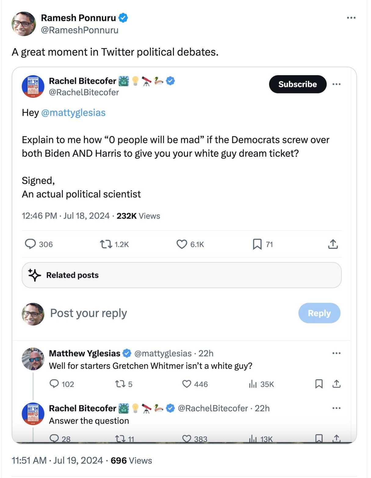 Via Ramesh Ponnuru, one for the Great Moments in Twitter collection: