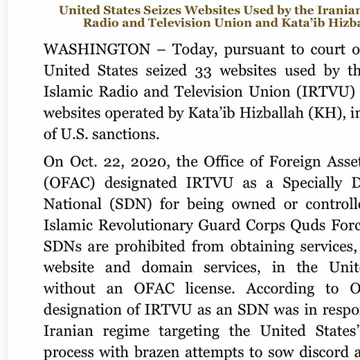 The US government has apparently seized dozens of news websites linked to Iran, a move sure to raise questions of national security versus press freedom: