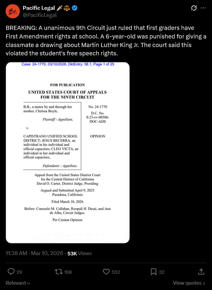 Good news out of the 9th Circuit this week: children do indeed have First Amendment rights; their youth is no excuse to silence their speech.
