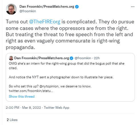 Here’s Greg Lukianoff of the Foundation for Individual Rights in Education responding to the overwrought reactions to FIRE intern Emma Camp’s New York Times essay yesterday (item #1):