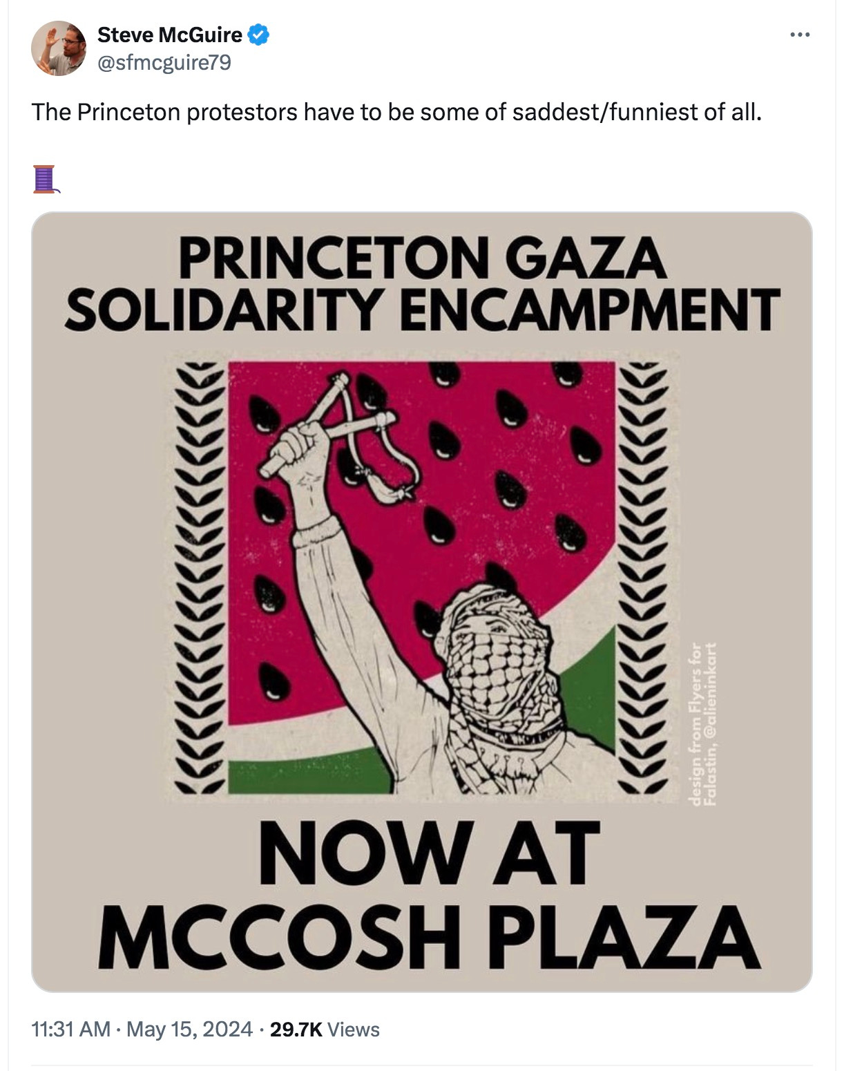 And finally, the first tweet in a thread from Steve McGuire on the Princeton protesters. The design they chose for their flyer should have been a red flag… Click for the whole thread.