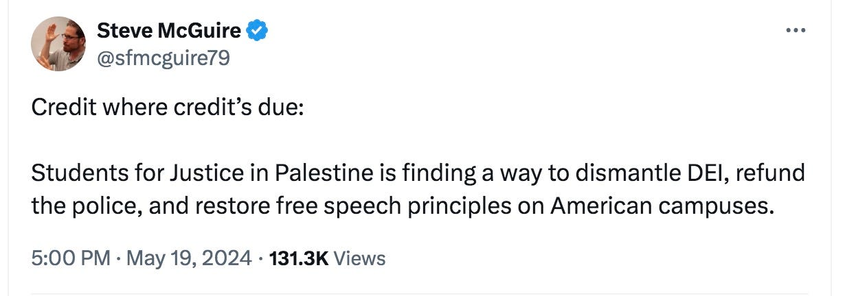And finally, Steve McGuire finds a silver lining in the student protests: