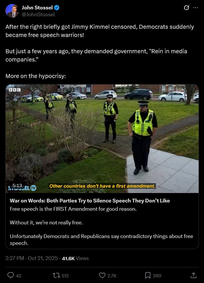 Perennial gadfly John Stossel calls out double standards in the First Amendment debate. It seems many people who today are dedicated free-speech warriors only recently lobbied the government to clamp down on…free speech. Hypocrisy be thy name, says Stossel.