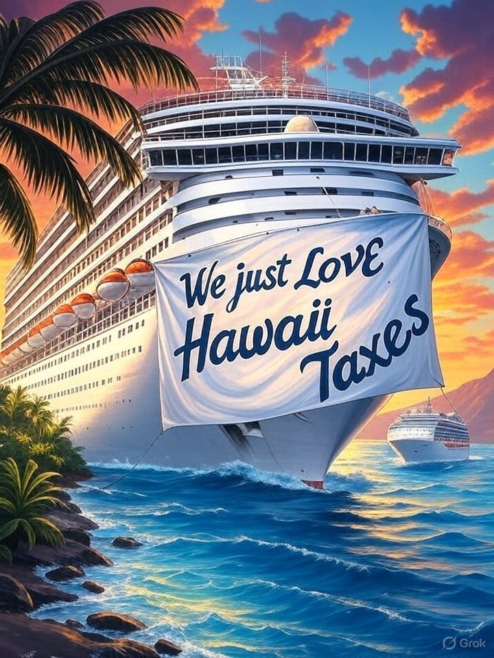 Act 96, set to kick in on January 1, 2026, imposes an 11% surcharge on the prorated gross fares of cruise ships docking in Hawaiian ports, with counties piling on another 3% for good measure. That's potentially hundreds of millions in new fees over the next decade, funneled not toward actual port services (which cruise lines already pay for handsomely), but into general "green" projects like climate initiatives.